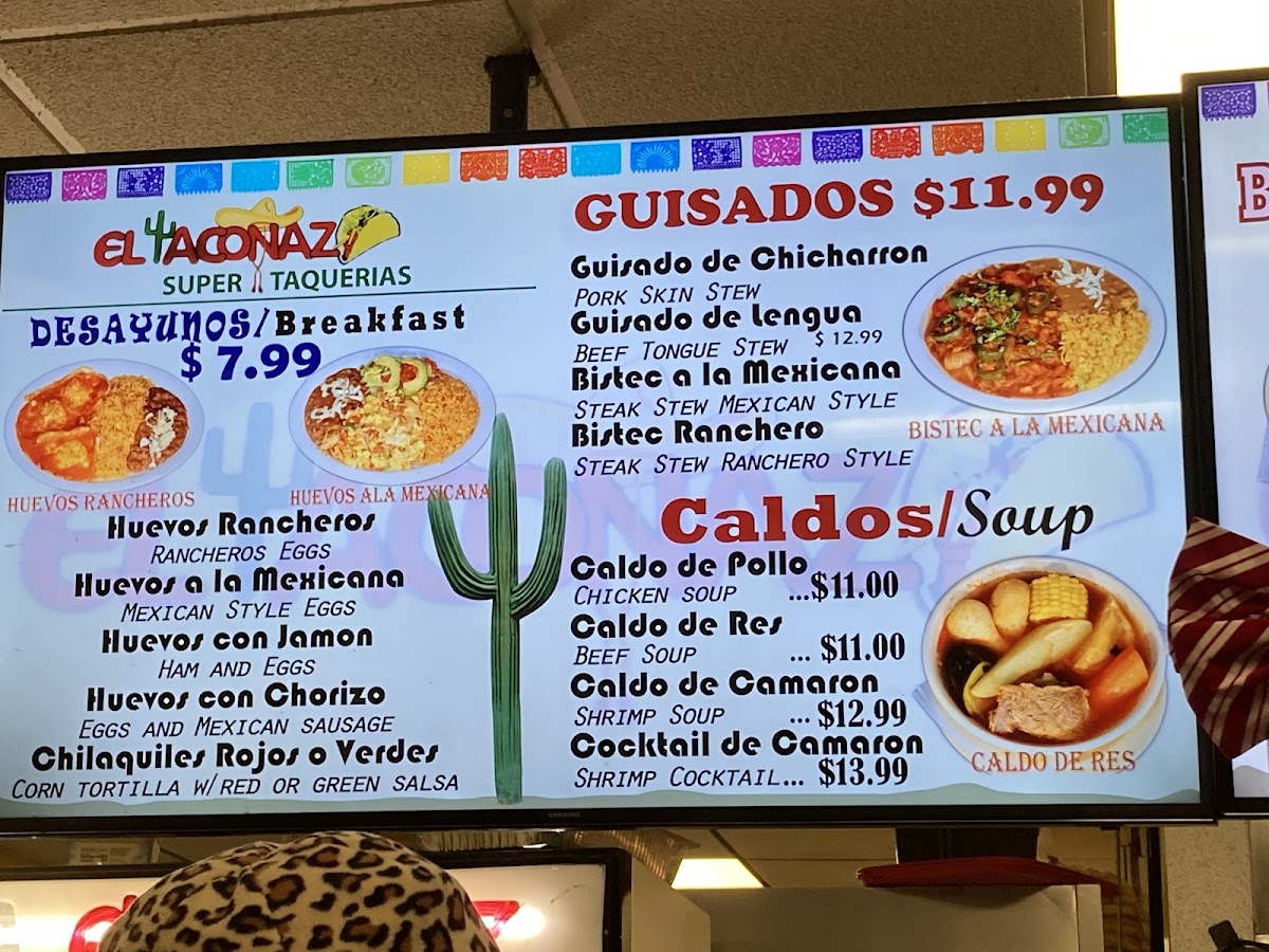El Taconazo La Fiesta offers a menu that reflects the vibrant and comforting flavors of authentic Mexican cuisine in a casual, inviting setting. The selection is approachable, featuring classic Mexican fare that suits any part of the day—from satisfying breakfast options like chilaquiles and huevos rancheros, to hearty lunches and late-night bites such as carne asada tacos, lengua burritos, pozole, and barbacoa.